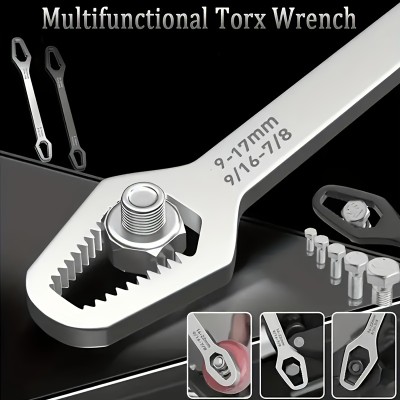 3pcs Heavy-Duty Double-Ended Wrench Set with Self-Tightening Crescent, Box-End, French Adjustable Wrenches & Screwdriver Heads - High-Hardness Steel Short-Handle Kit for Tight Spaces, Repairs